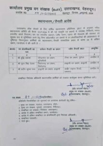 सावन का महीना है कांवड़ चल रही है और ऐसे में ट्रांसफर की बयार भी चाल रही है,खैर ये तो शासन प्रशासन को दुरुस्त रखने के लिए होना भी चाहिए। हालांकि ठीक कुछ दिन पहले ही आईएफएस की लिस्ट जारी हुई थी अबकी बार बारी थी फॉरेस्ट डिपार्टमेंट मुख्यालय ने 32 रेंजर्स इधर से उधर करते हुए लिस्ट जारी कर दी है..
