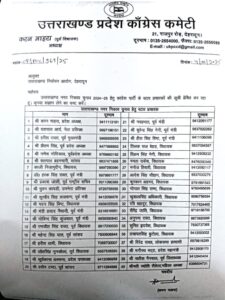 उत्तराखंड कांग्रेस द्वारा नगर निकाय चुनाव हेतु स्टार प्रचारकों की लिस्ट जारी कर दी गई है लिस्ट मे प्रदेशाध्यक्ष के साथ ही पूर्व सीएम पूर्व मंत्री समेत पार्टी के बड़े नेताओ को लिस्ट में तरजीह दी गई है। देखिए लिस्ट….