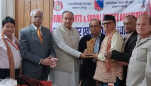 मानवाधिकार एवं सामाजिक न्याय संगठन द्वारा उत्तराखंड राज्य स्थापना दिवस के अवसर पर मसूरी रोड स्थित पुरुकुल हेरिटेज ग्रीन में जस्टिस राजेश टंडन के कार्यालय में उत्तराखंड को बनाने में अपना सहयोग देने वाले वरिष्ठ आंदोलनकारियों का सम्मान किया गया।