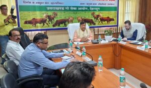 उत्तराखंड गौ सेवा आयोग के अध्यक्ष डॉ.राजेन्द्र अणथ्वाल की अध्यक्षता में बृहस्पतिवार को मोथरोवाला स्थित पशुधन भवन सभागार में गौ सेवा आयोग की कार्यकारिणी की बैठक संपन्न हुई। जिसमें राज्य के सभी जनपदों में गौ सदनों के निर्माण, संचालित गौ सदनों की स्थिति और गौ कल्याण कार्यक्रम की विस्तार से समीक्षा की गई। आयोग की बैठक में गौ माता को राष्ट्रमाता का दर्जा देने सहित गोवंश संरक्षण हेतु कई प्रस्तावों को भी पारित किया गया।