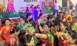 इस अवसर पर पहुंची महिलाओं का आभूषण मेकअप और मेहंदी लगाने को लेकर प्रतियोगिता का आयोज। किया गया।