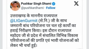 राज्यपाल लेफ्टिनेंट जनरल (से.नि.) गुरमीत सिंह के साथ मुख्यमंत्री पुष्क सिंह धामी ने जमरानी बांध परियोजना के कार्यों का हवाई निरीक्षण किया। निरीक्षण के दौरान मुख्यमंत्री और राज्यपाल ने परियोजना की प्रगति की जानकारी ली तथा अधिकारियों से बिंदुवार चर्चा की।