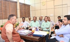 सैनिक कल्याण मंत्री गणेश जोशी ने आज कैंप कार्यालय में सैन्य धाम के निर्माण से संबंधित अधिकारियों और जिला प्रशासन के अधिकारियों के साथ निर्माण कार्यों की समीक्षा की।