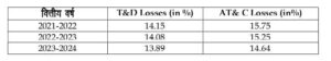 यूपीसीएल द्वारा पिछले 03 वर्शों के T&D एवं AT&C- हानियों का विवरण निम्नवत् हैः-