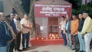 उत्तराखण्ड राज्य आंदोलनकारी मंच द्वारा प्रतिवर्ष की भांति दीपावली के अवसर पर शहीदों के निमित दीप प्रज्वलित कर खिल बताशे का भोग लगाकर श्रद्धा सुमन अर्पित किये।