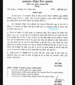 परिवहन निगम के प्रबंध निदेशक रीना जोशी द्वारा 8 अगस्त को जारी किए गए आदेश के अनुसार, यह कार्रवाई उत्तराखंड परिवहन निगम अधिकारी सेवा (सामान्य) विनियमावली, 2009 के भाग-पांच के विनियम 77 के तहत की गई है।